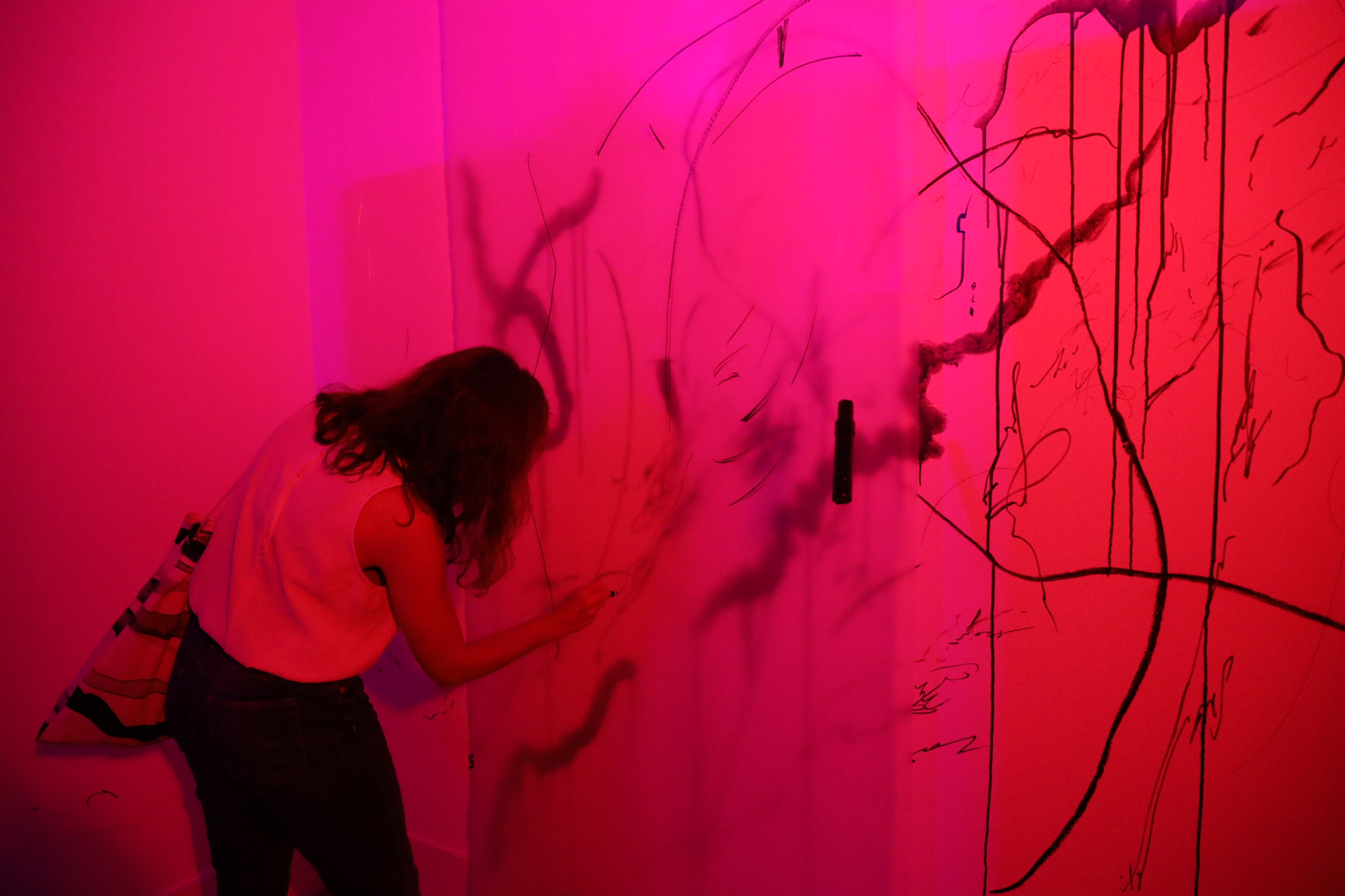 O rasto, esse resultado do ser em movimento, é, pois, aqui atendido segundo a dimensão corporal, dinâmica e espacial que lhe é tão característica. É neste sentido que em linha entre nós, e no conjunto de obra de Inês Nêves, resulta a relação simbiótica entre o desenho e a performance. Porque, tal como apontado por Merleau-Ponty, “visível e móvel, o meu corpo pertence ao número das coisas, é uma delas, está preso na